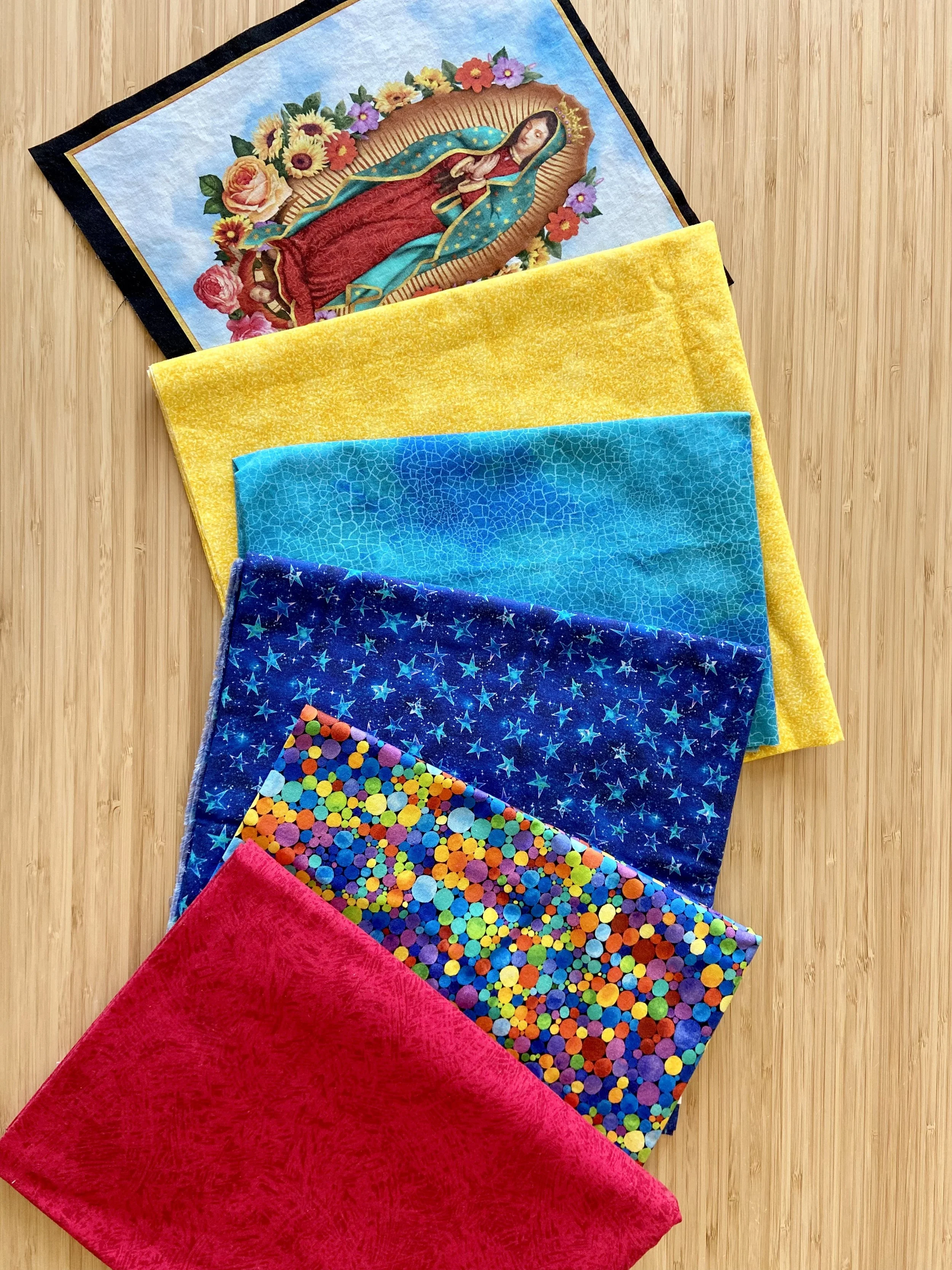 As with many other people, the COVID pause left Gale feeling at a loss for what to do. And then she remembered the welcome fabric squares drawn by the students in Patagonia. She had enough squares to make eight Welcome Quilts. Creating these quilts was very therapeutic. In one corner she put an image of Our Lady of Guadalupe, a symbol of faith and cultural identity in Mexico and other Spanish-speaking countries, as an invitation for individuals from those areas to see the welcome messages and drawings.